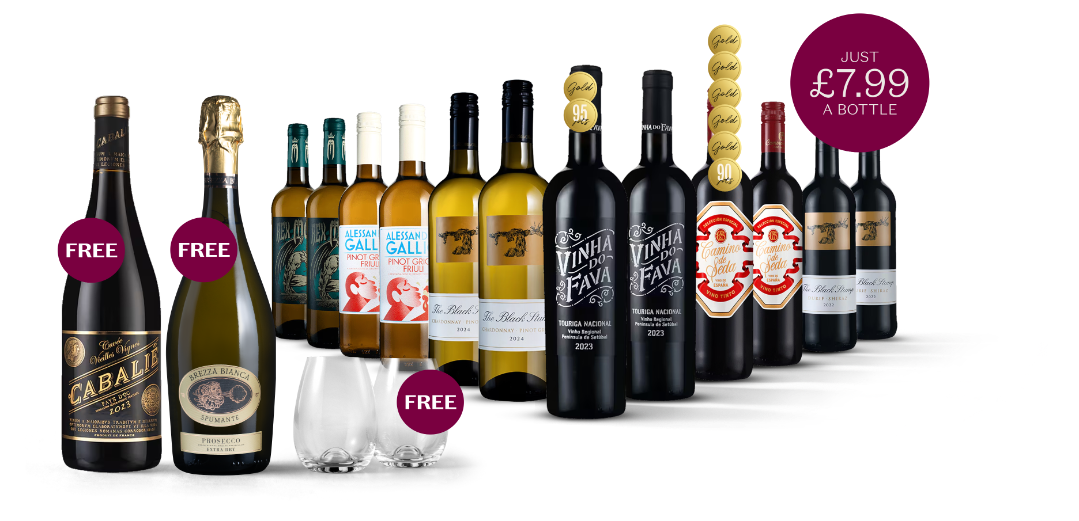 12 BESTSELLING WINES JUST £7.99 A BOTTLE PLUS FREE GIFTS